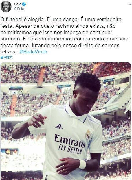 西班牙经纪人协会主席佩德罗-布拉沃此前批评了维尼修斯在进球后跳舞的行为,并表示“在西班牙,你必须尊重对手,不要再当猴子了”。 球王贝利在不久前通过社交媒体回应道:“足球是快乐的,这是一场舞会,一场真正的派对。尽管种族主义…